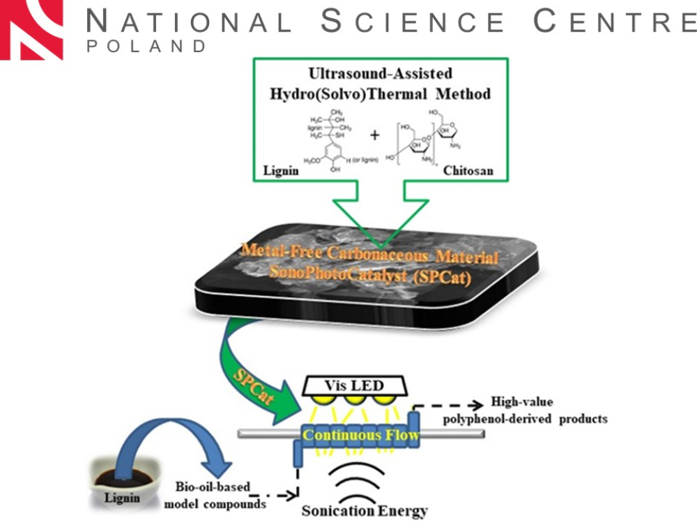 This project aims to develop a novel method for the transformation of lignin and chitosan into valuable metal-free nitrogen(N)- and/or sulphur(S)-containing carbonaceous photocatalysts. New catalytic materials possessing excellent sonophotocatalytic redox properties to assist continuous flow photo-redox processes in obtaining high-value chemicals from bio-oil-based molecules upgrading.